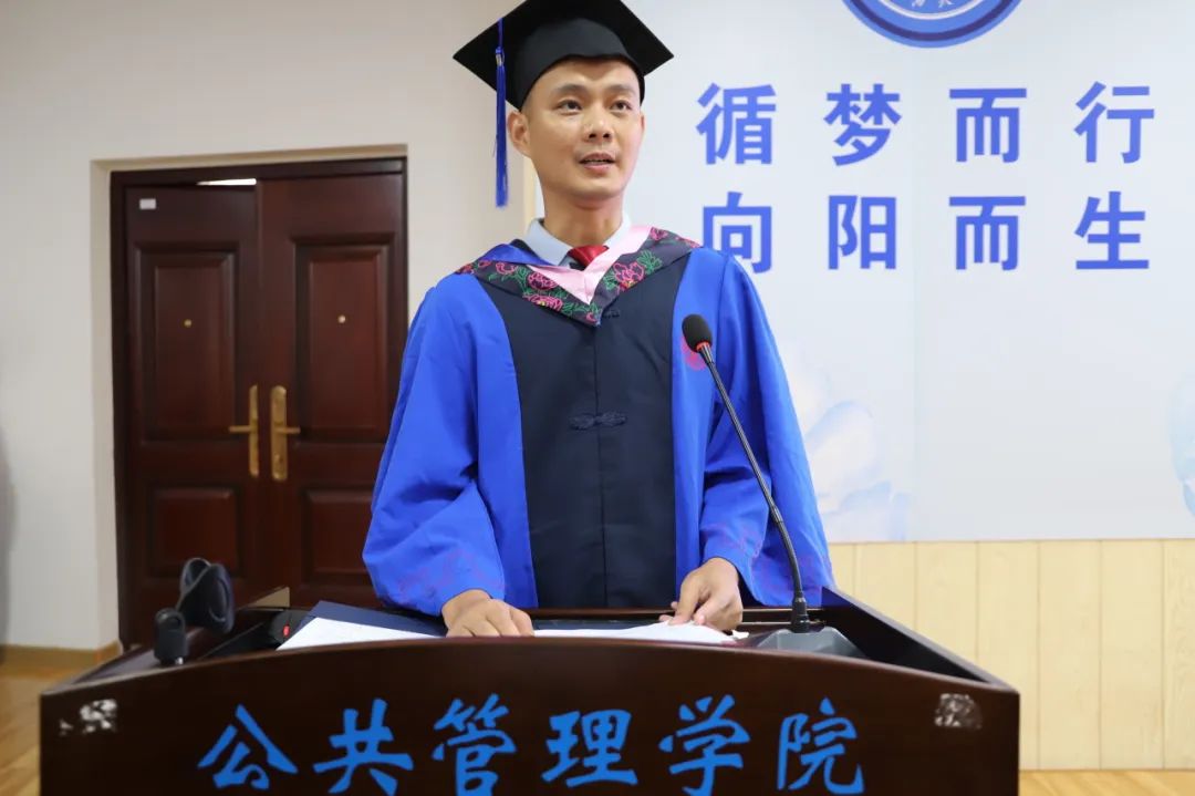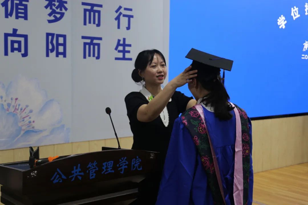 教师代表雷文艳向各位毕业生们表达了衷心祝贺,向在场的亲友团们表示崇高敬意和感谢,并嘱咐所有毕业生:“公共管理中的公共对应的是私人,我们采用公共手段的目的不只是维护公共,更是为了让私人生活变得更加美好。世界正经历百年未有之大变局,唯有通过学习才能把握主动、从容应对。”毕业只是人生的转场,终生学习的进程刚刚开始,只有持续充电才能跟上时代进步。道路且长,行则将至,无论身在何处,老师们都会和你们一起学习、成长!