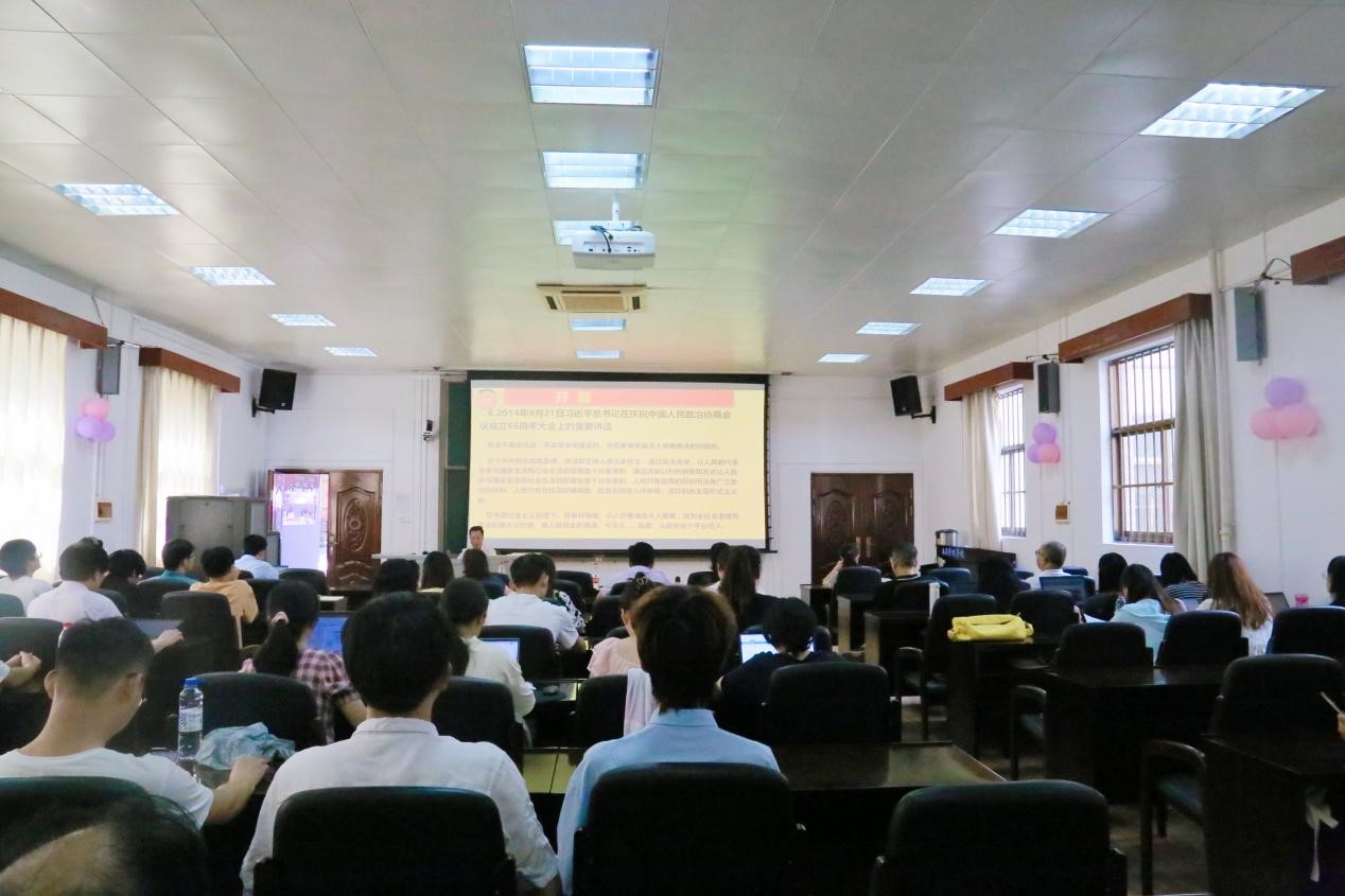 7月3日下午,由校党委统战部、金沙赌场网站 联合举办的“凝心铸魂强根基、团结奋进新征程”主题教育专题报告会在金沙赌场网站 107报告厅举办。报告会邀请自治区政协副秘书长,办公厅副主任、党组成员肖顺平作题为“从协商民主到全过程人民民主”的专题讲座。讲座由金沙赌场网站 党委书记聂鑫教授主持,校党委统战部成员、学校各民主党派成员、无党派人士、留学归国人员、归侨、侨眷、台胞、台属、党外知识分子代表及我院众多师生参加了本次讲座。