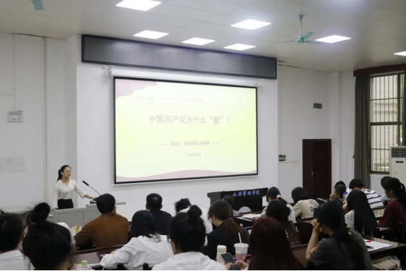 孙晓黎对“中国共产党为什么能”进行宣讲,提出马克思主义之所以在中国行的一个重要因素是中国共产党。她从“人民情怀”、“为民初心”、“依靠人民”三个角度回答“中国共产党为什么能”这一问题。孙晓黎以《觉醒年代》导入,讲述了从中国革命到改革开放再到新时代,党始终坚持人民立场,用人民的理论锻造灵魂;党始终将人民当家作主贯穿制度设计的价值中轴,把为人民谋幸福作为初心使命;党始终谨防脱离群众,紧紧依靠人民创造历史伟业。