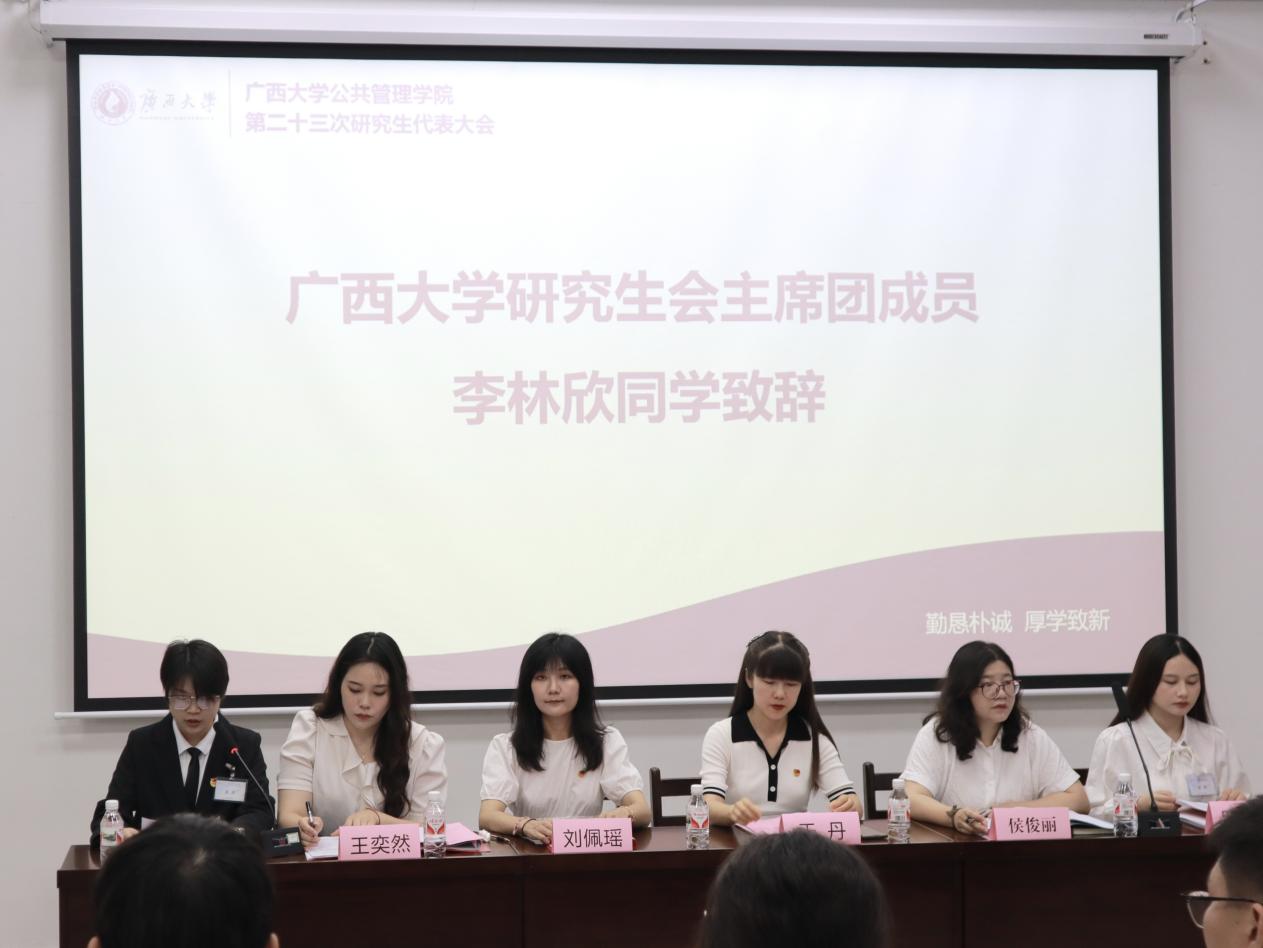广西大学研究生会主席团成员李林欣同学在致辞中指出,金沙赌场网站 研究生会始终支持和配合校研究生会的各项工作,在学术科研、文体活动、志愿服务、权益维护等方面开展了一系列工作,举办了许多具有金沙赌场网站 特色的品牌活动,为金沙赌场网站 发展和高素质人才培养做出了重要贡献。她表示,希望新一届研究生会全体成员能不忘初心,牢记使命,与校研会携手并进,共同把研究生引领与服务工作推向新的高度,谱写出更加灿烂辉煌的新篇章。