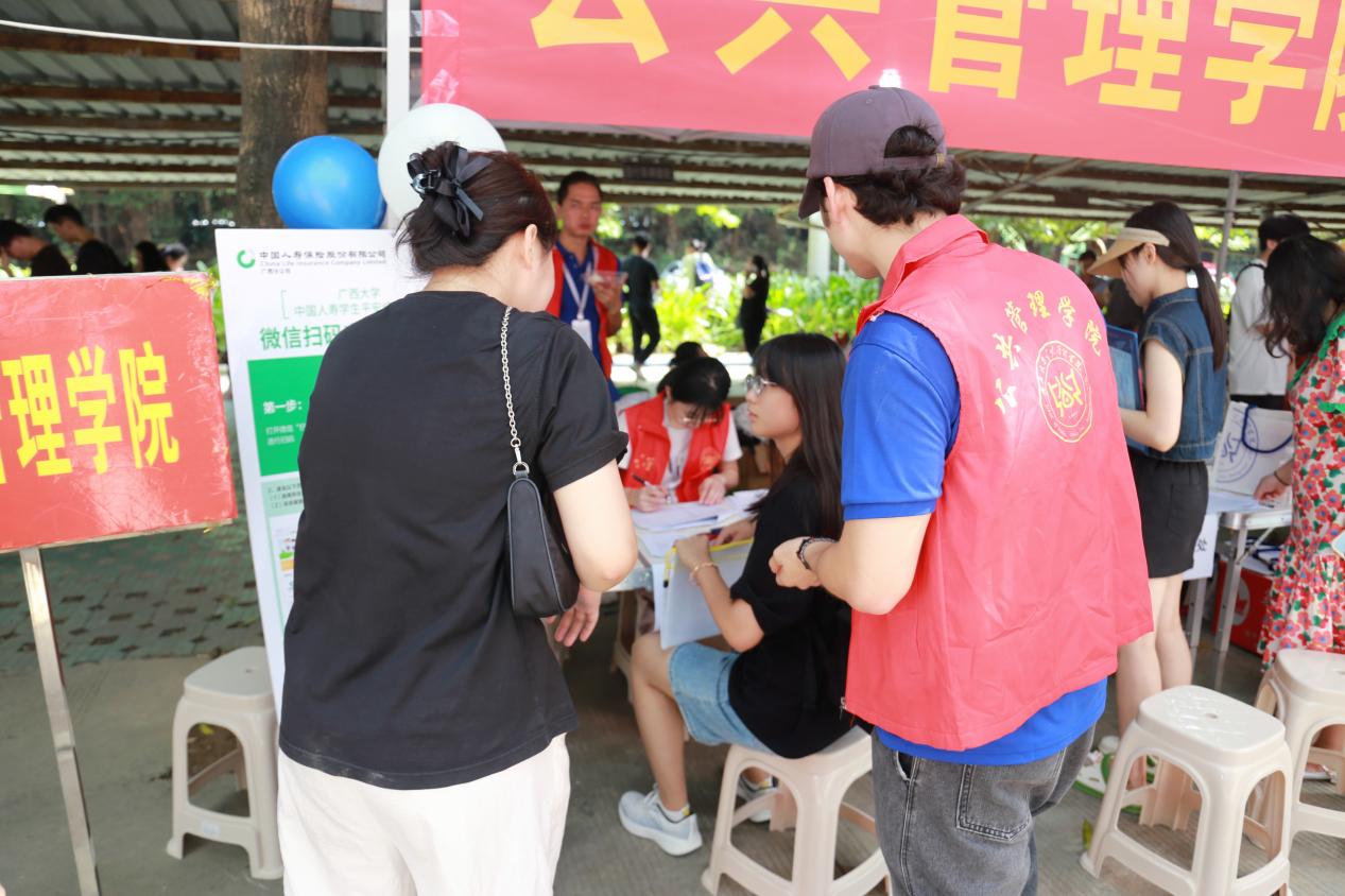 在宿舍楼周边,公管志愿者们忙碌地穿梭其间,主动帮助新生们搬运行李,新生们感受到了公管大家庭的关怀。