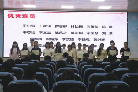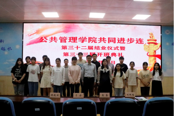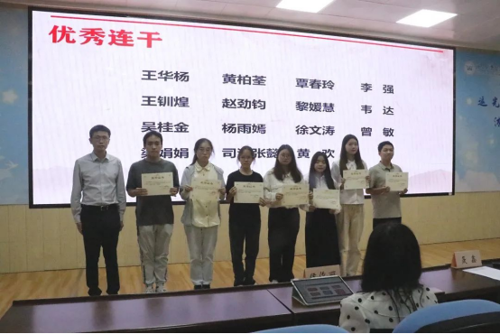 仪式公布了第三十二届共进连结业连员、优秀连员、优秀连干名单,聂鑫与于丹分别为优秀连干、优秀连员颁发荣誉证书并合影留念。