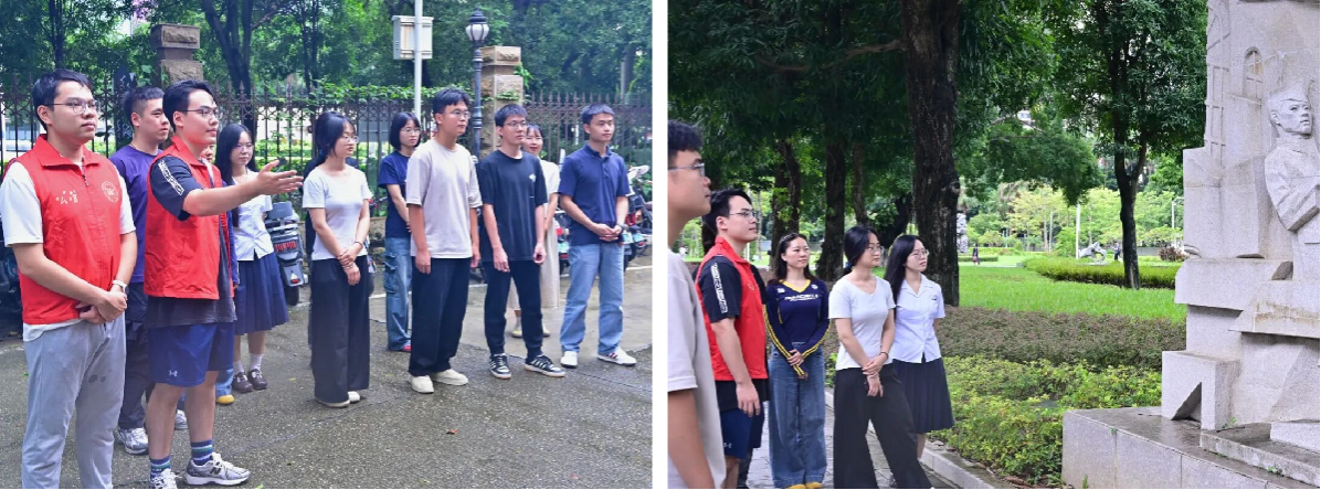 志愿者们化身“校园导游”,带领新生探访校园内的标志性场所,讲解各建筑的功能用途与校园历史故事,助力新生快速熟悉校园环境,让每一个角落都留下他们的足迹。