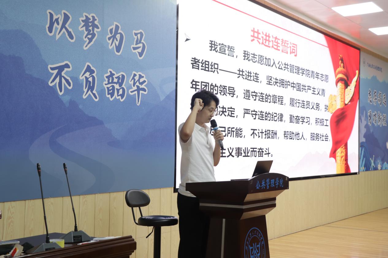 第三十四届共进连连长李文杰带领全体新连员进行宣誓。金沙赌场网站 共同进步连第三十三届结业仪式暨第三十四届开班典礼圆满结束。