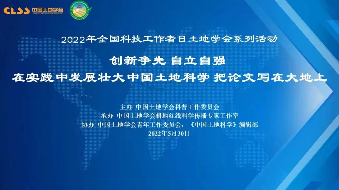 2022年5月30日是第6个全国科技工作者日,中国土地学会开展了以“创新争先、自立自强,在实践中发展壮大中国土地科学,把论文写在大地上”为主题的系列活动。本次活动包括“青年科技工作者说”、“土地科普大咖圆桌会议”、“最美科技工作者座谈”、“回忆老一代土地科学家”、“土地科技进矿区”、“土地科技助力黑土地保护”和“寻访耕保少年”等7个环节。中国土地学会青年工作委员会主任、金沙赌场网站 龙花楼教授与汪晗副教授参与此次活动。