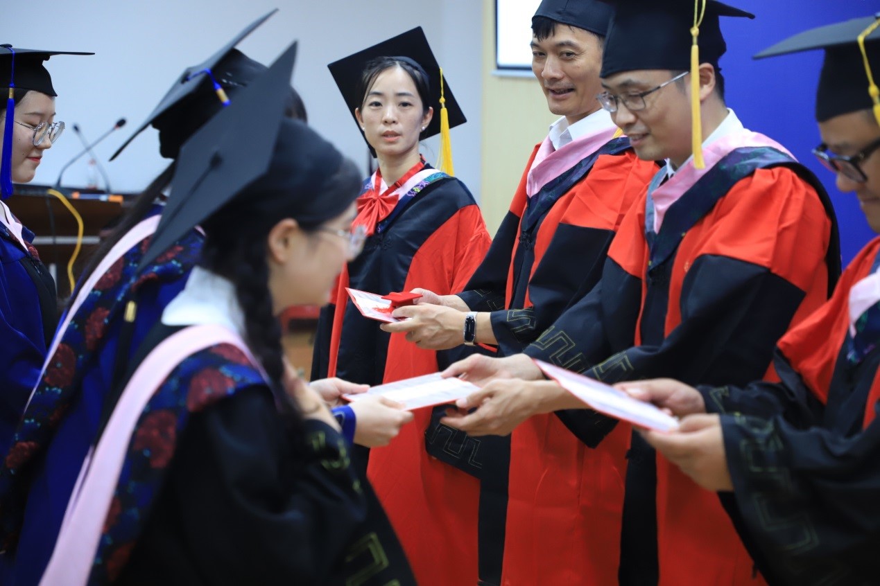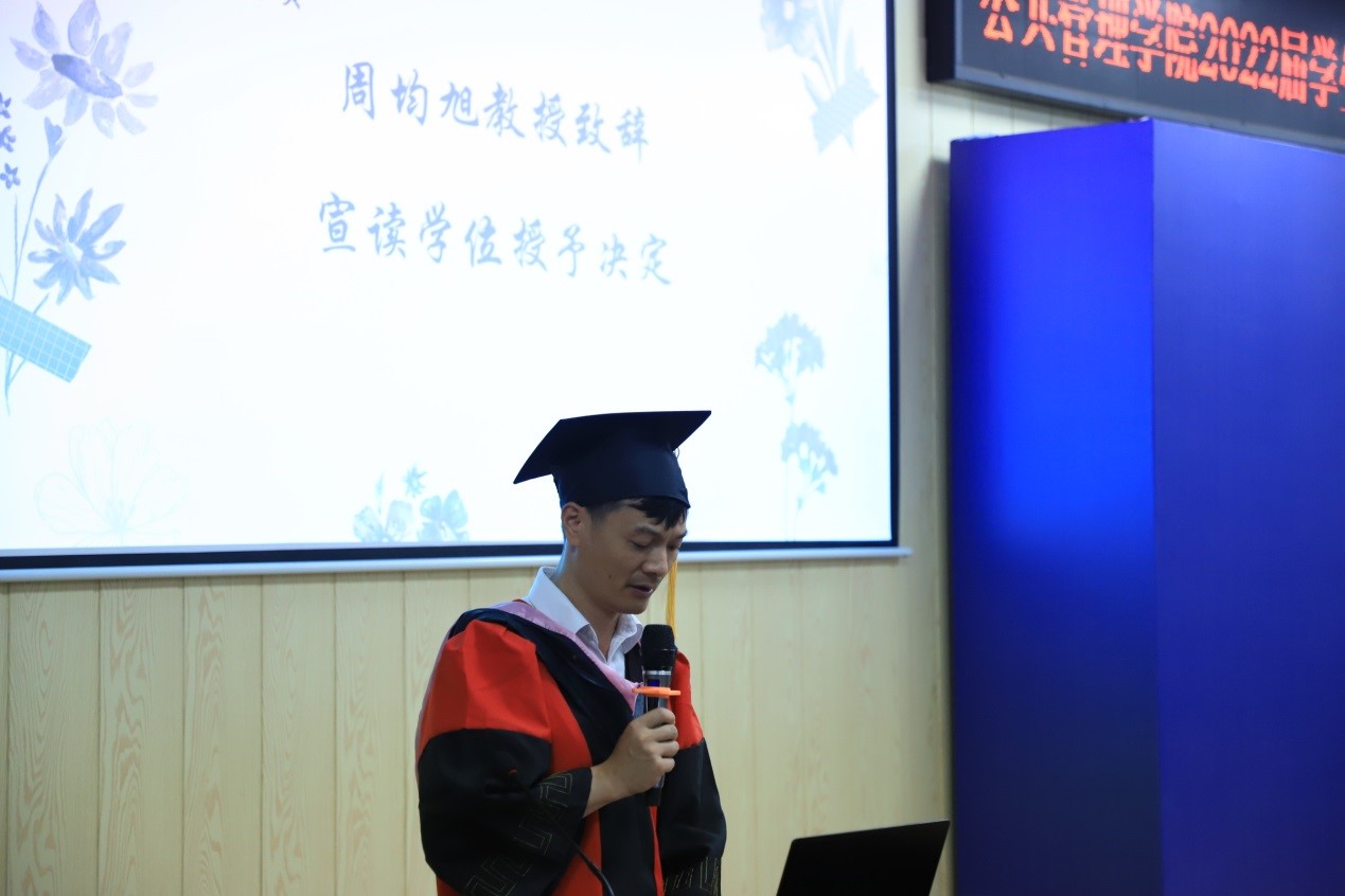 6月24日,澳门金沙赌场线上官网 在金沙赌场网站 203教室为本院毕业生举行毕业典礼暨学位授予仪式。院党委书记聂鑫、副院长周均旭、副院长黄宏伟、各系部主任、研究生导师、教师代表、毕业班班主任、辅导员、全体毕业生等共计三百余人参加,院党委副书记庞惠主持本次典礼。