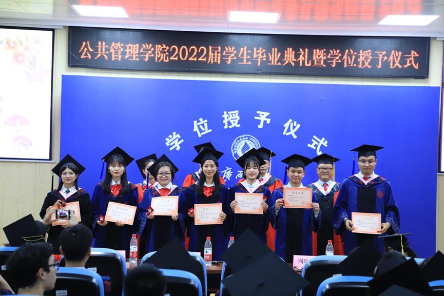 全体参会人员在金沙赌场网站 分会场参加了广西大学2022届毕业典礼暨学位授予,随后,金沙赌场网站 毕业典礼暨学位授予仪式拉开帷幕。聂鑫首先向全体毕业生表示祝贺,并提出三点嘱托。一是要加倍用心。走入社会,要更加勤奋努力工作,为今后发展打下扎实基础。不要害怕“吃亏”,吃亏虽然意味着舍弃和牺牲,但也是一种做人做事的风度,是工作的积累,是提高做事能力的途径,是维护人际关系的重要技巧。二是要主动学习和思考。在与别人互动时,寻找别人身上的优点和长处,是不断成长的重要方法;在各种要求和难题接踵而至时,要坚持不懈地学习和成长;在多线程的忙碌中,要积极思考未来规划,做个有奋斗目标的人。三是坚持就是胜利。北京大学中国农业政策研究中心主任,长江学者黄季焜教授和人民大学农业与农村发展院院长,长江学者仇焕广教授之间的小故事告诉我们,成功不是偶然的,是无数个小时积累起来的,将勤奋坚持成一种习惯是一件了不起的事情。