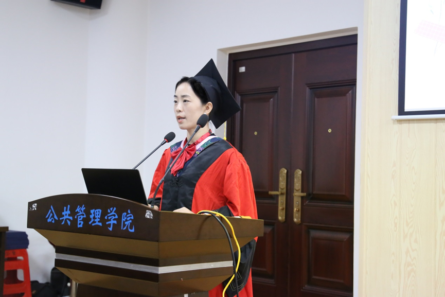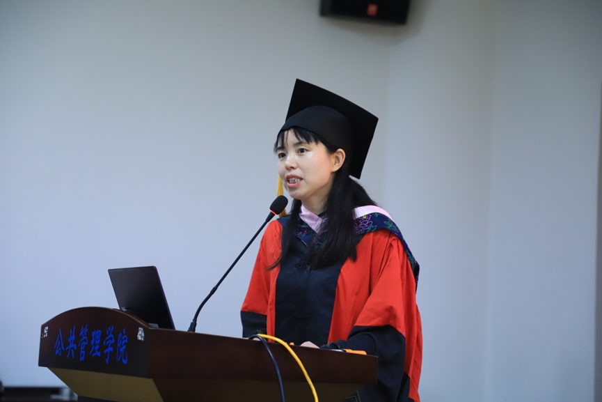 教师代表李小红副教授、学硕毕业生代表蒋文倩、专硕毕业生代表言天磊、本科生毕业生代表文颖、及在校生代表唐正昌上台发言。李小红首先向同学们道一声感谢,金沙赌场网站 公共管理事业管理专业在2022年软科中国大学专业排名的提升离不开师生的共同努力。其次祝贺同学们顺利毕业,取得阶段性圆满。在进入下一阶段之前,可能会存在激动、期待、紧张和无措的情绪,但是希望大家能在当下细细回想老师、同学们的教导与陪伴,这些将会是你们不惧困难的力量。李小红以浙江大学高中山教授的经历告诉我们在学术追求的道路上,不应仅仅只有爱好和喜欢,更多的是要责任和担当。希望我们每个公管人在日后的工作和学习中,都能挑起重担,在面临困难时都能够坚持不懈。同时也欢迎同学们在想念母校的时候,能够常回母校看看,老师们也会想念大家。
