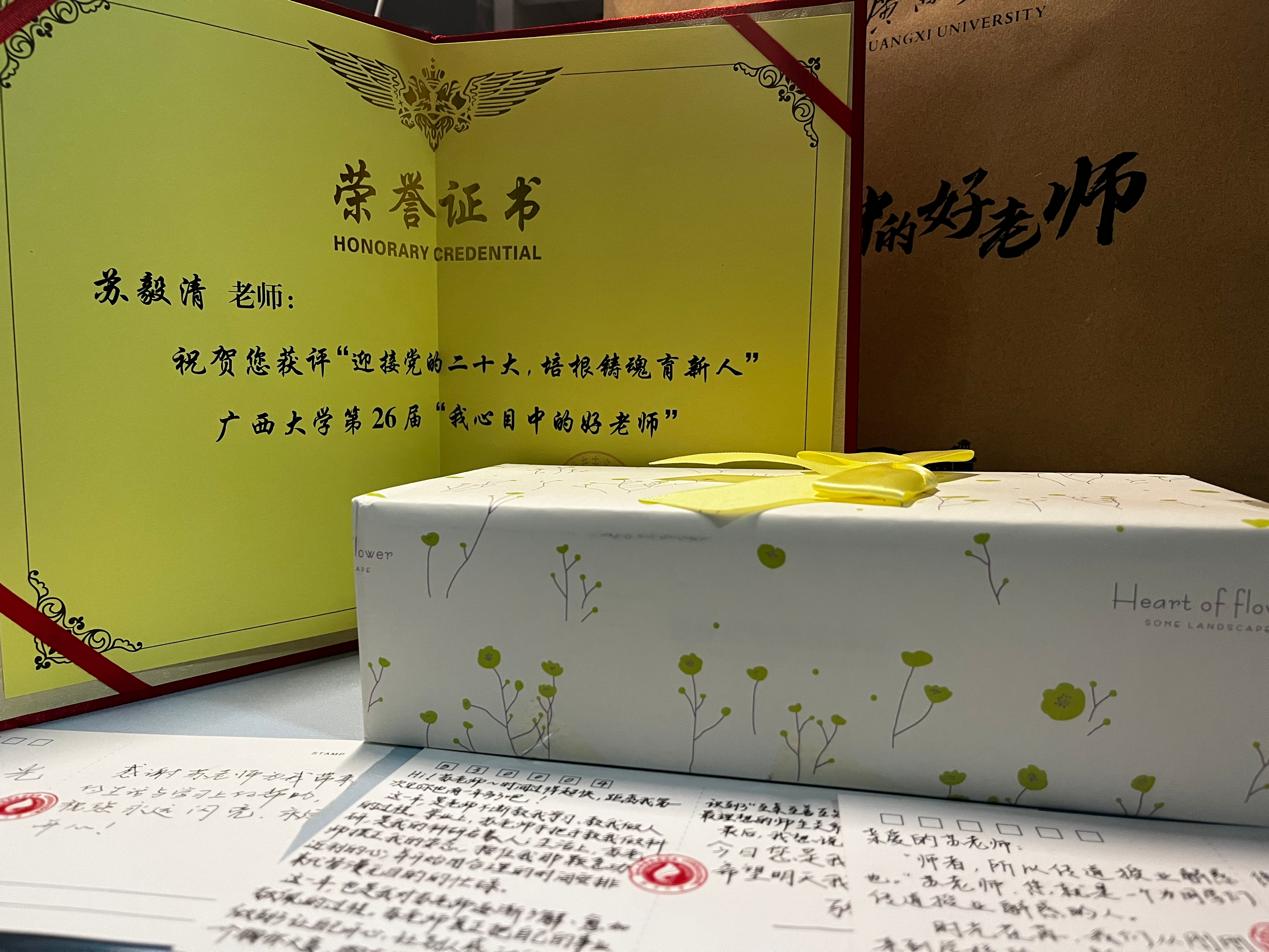 弘德树人 师韵兰香|金沙赌场网站 汪晗、苏毅清老师荣获广西大学第26届“我心目中的好老师”称号