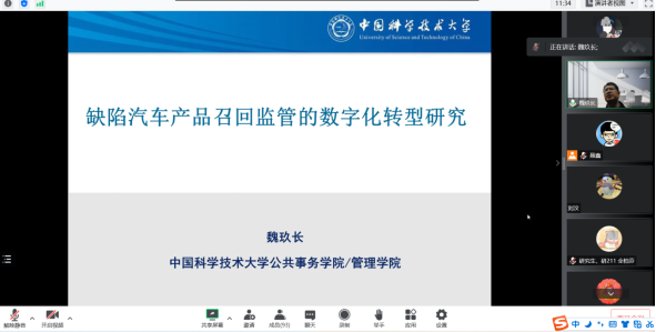 10月26日,魏玖长教授受邀出席金沙赌场网站 公管名师大讲堂,作题为“缺陷汽车产品召回监管的数字化转型研究”的线上主题讲座。讲座由金沙赌场网站 党委书记聂鑫教授主持,我院博士生、硕士研究生等百余人参加了本次学术讲座。
