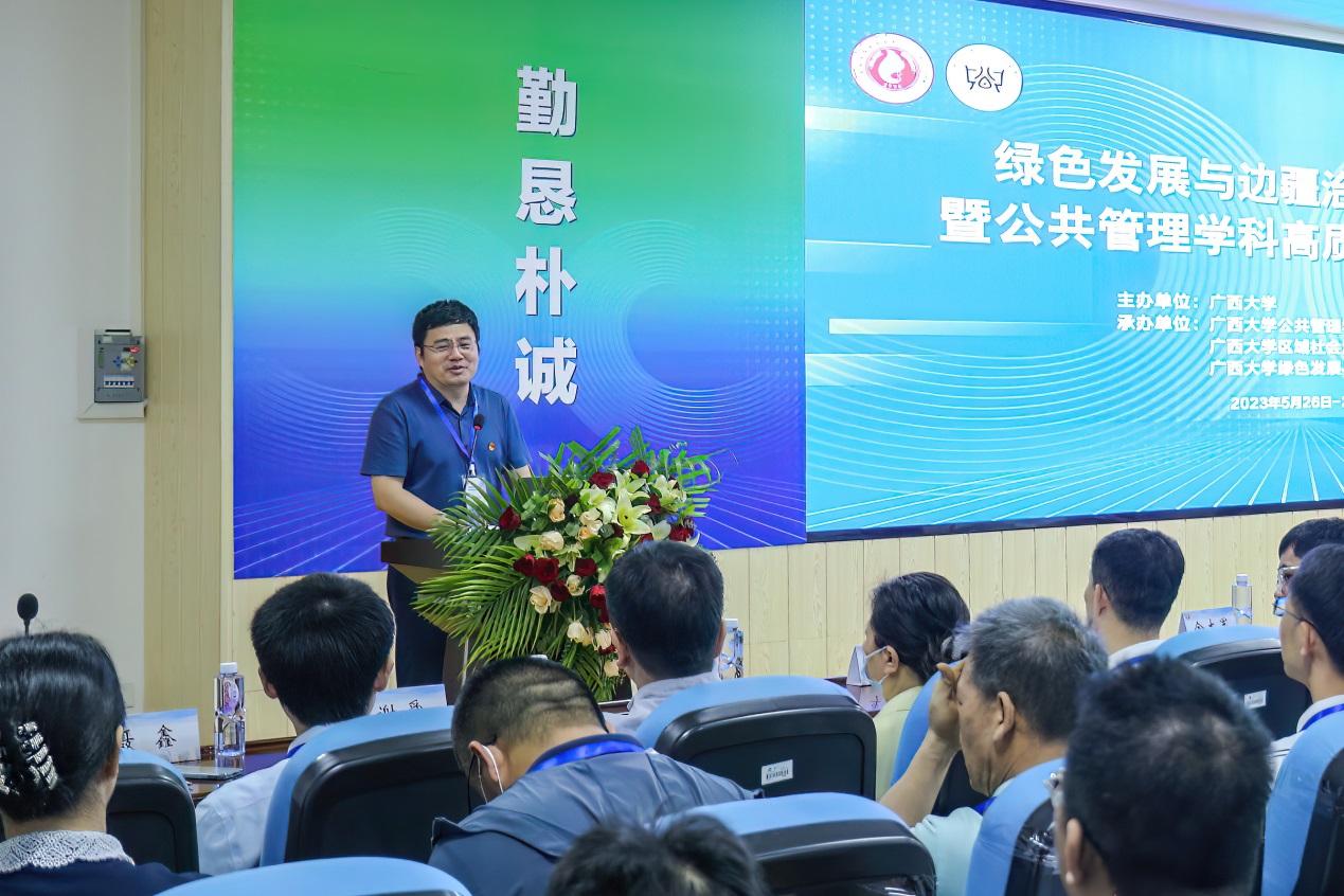 范祚军代表广西大学对论坛的召开表示祝贺,并指出,绿色发展与边疆治理一直是哲学社会科学研究的热点、重点和难点问题。在全国上下深入开展学习贯彻习近平新时代中国特色社会主义思想主题教育之际,广西大学举办绿色发展与边疆治理高端论坛是深入贯彻习近平总书记对广西“五个更大”重要要求、视察广西“4·27”重要讲话和对广西工作系列重要指示精神的会议,广西大学将全面贯彻中央和自治区关于发展绿色发展和边疆治理的指示精神,为边疆开放发展、新时代广西开放型经济发展继续提供智力支持与人才支撑。金沙赌场网站 聚焦“绿色”“民族”“边疆”问题研究,科研成果显著,金沙赌场网站 整体建设水平实现跨越式发展,希望金沙赌场网站 以此次高端论坛为契机,继续探索“边疆治理”的绿色路径,为学校“双一流”建设和广西经济社会高质量发展贡献力量。