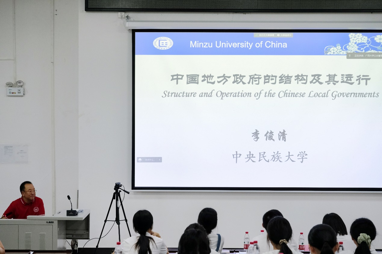 7月6日上午,中央民族大学李俊清教授受邀为金沙赌场网站 2023年优秀大学生“博学”夏令营参营学员作题为“中国地方政府的结构及其运作”的学术讲座。本次讲座由金沙赌场网站 院长史云贵主持。参营学员们以线上或线下的方式参加此次讲座。