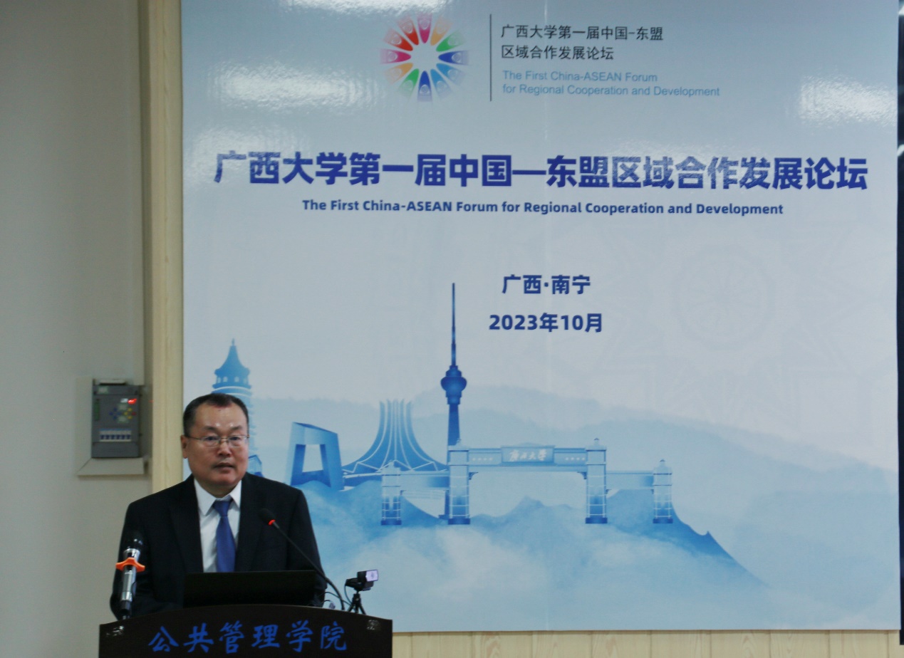 10月14日,由广西大学主办的第一届中国-东盟区域合作发展论坛在广西大学举办,论坛主题为“中国-东盟:为了更好的未来”。中国-东盟绿色发展与区域治理分论坛在金沙赌场网站 203会议室举行,来自泰国、菲律宾等国内外二十余位专家学者与金沙赌场网站 师生共聚一堂,就绿色发展、区域治理等热点问题进行交流讨论。
