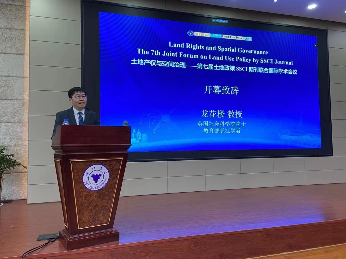 2023年10月13-15日,由浙江大学、Cities、Habitat International、Land Use Policy、《中国土地科学》编辑部联合主办的“土地产权与空间治理”——第七届SSCI期刊联合国际学术会议在浙江大学召开,金沙赌场网站 教授、Land Use Policy编委龙花楼教授担任本次会议大会主席,代表会议主办方致开幕辞。