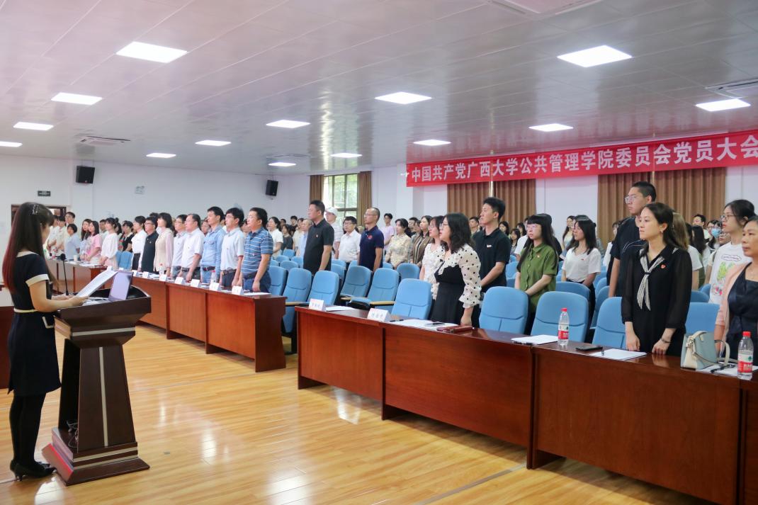 报告号召在学校党委的正确领导下,金沙赌场网站 新一届党委必将以本次大会的胜利召开为契机,全面落实广西大学“龙头+双轮驱动”战略,牢记“公管人”的使命担当,坚持“一个中心,两个着力点”的金沙赌场网站 发展理路,聚力打造公共管理学科的“绿色”品牌,全面推进广西大学公共管理学科和金沙赌场网站 的高质量发展。