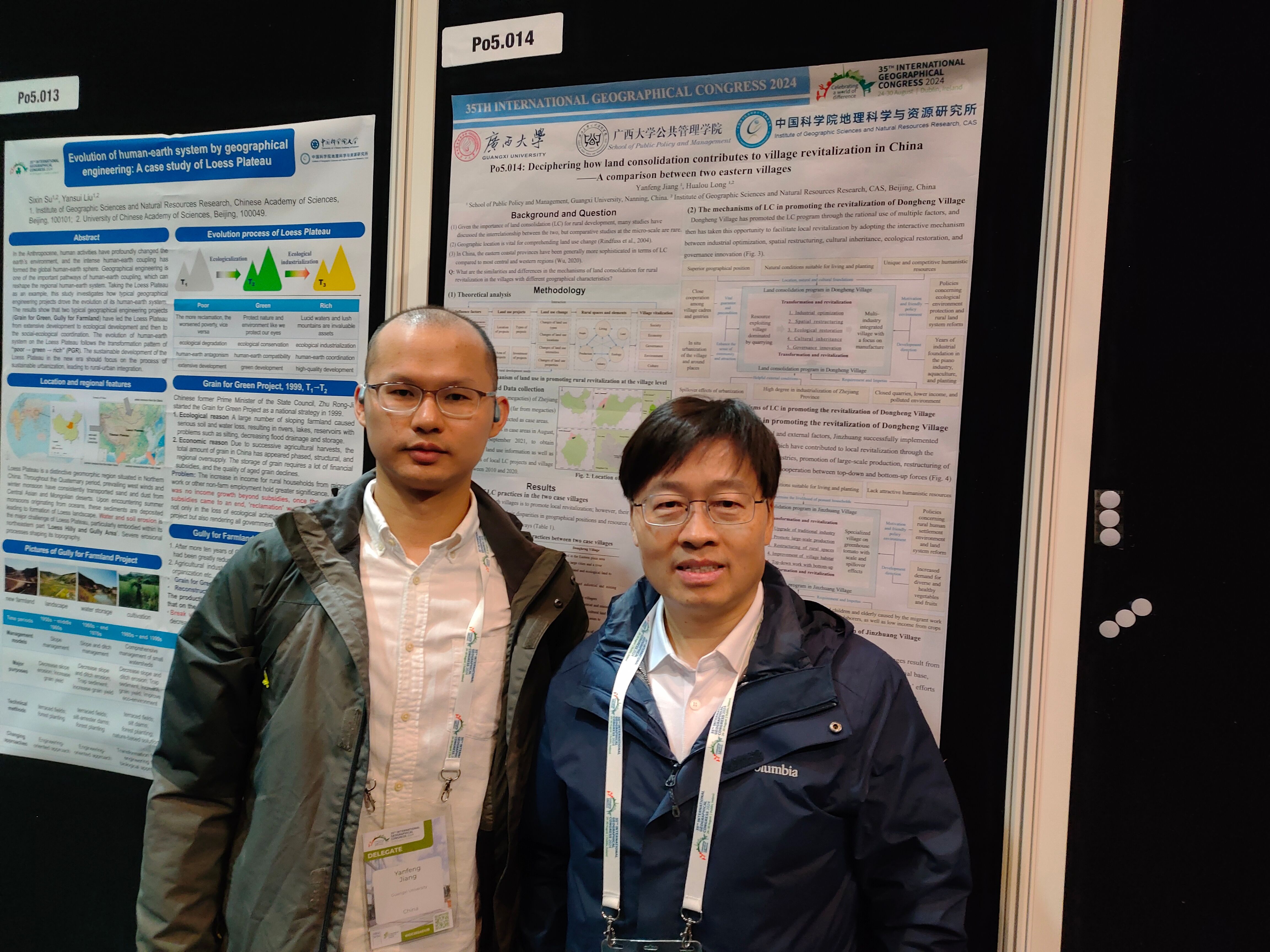 期间,龙花楼教授与姜棪峰助理教授共同做了两场报告题目分别为“Deciphering how land consolidation contributes to village revitalization in China—A comparison between two eastern villages”和“Ecological function transitions of land use in Beibu Gulf Economic Zone from the perspective of production-living-ecological spaces”的Poster Presentation,引起了国际同行的热烈关注。此外,龙花楼教授作为国际地理联合会乡村系统可持续性委员会(IGU-CSRS)指导委员,带领姜棪峰助理教授与国内外专家同行开展学术研讨和交流,深入探讨了未来在会议组织、平台建设、人才培养、成果发表与实地考察等领域的合作前景。