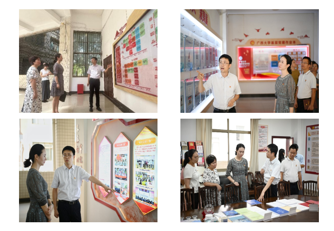 活动中,聂鑫带领财务处党支部同志参观金沙赌场网站 党建文化墙及党员活动室,介绍金沙赌场网站 “党旗引领“五彩共融”党建品牌工作体系,展示金沙赌场网站 党建育人成果。