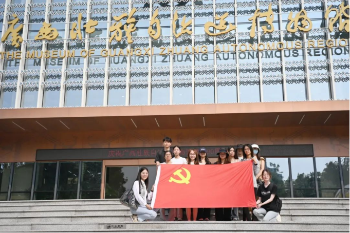 研究生第一党支部在广西壮族自治区博物馆,浏览“烽火南疆——广西近现代革命史陈列”馆,铭记在中国共产党领导下广西各族人民走过的革命岁月和取得的丰功伟绩。学生党员通过学习近现代中国共产党在广西的梦想和追求、情怀和担当、牺牲和奉献,提高思想觉悟,增强共产党员的责任与担当。