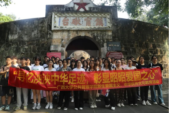 公共事业管理本科2024级2班新生前往南宁市人民公园,参观镇宁炮台和近现代国防历史陈列馆。金沙赌场网站 新生参观国防教育基地,了解南宁市近现代国防战事,感受南宁军民的爱国主义光荣传统和英勇不屈的英雄气概,铭记邓小平等革命领导人在广西的革命伟绩,提升国防意识,厚植家国情怀,满怀爱国之心。