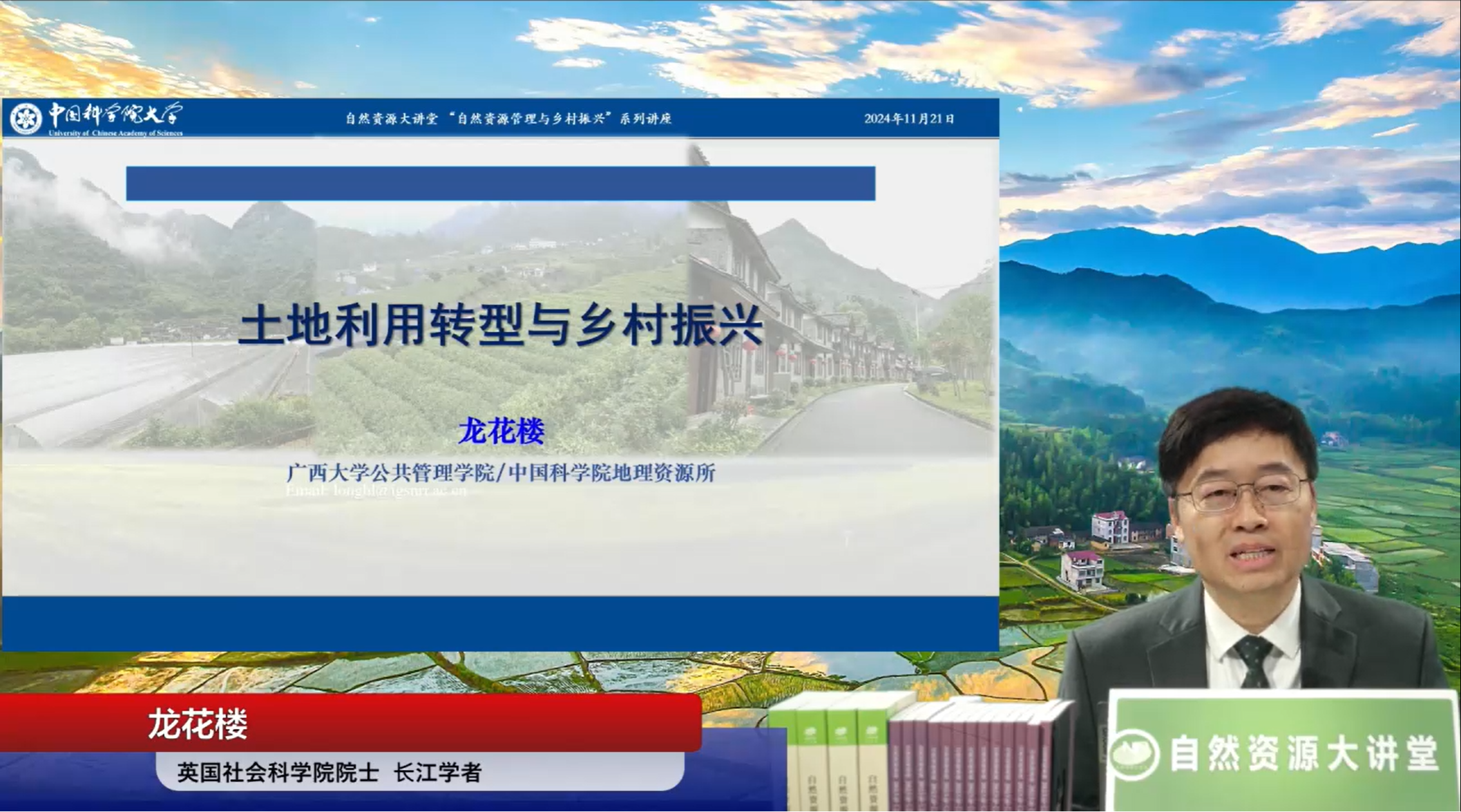 11月21日,金沙赌场网站 龙花楼教授作为自然资源大讲堂“自然资源管理与乡村振兴”系列公益直播特邀专家,作了题为“土地利用转型与乡村振兴”的主题讲座,聚焦通过学科交叉融合视角探讨综合运用经济、社会和工程技术手段与方法优化调控土地利用转型助推乡村振兴,从概念内涵、理论方法、关联机制、转型路径等四个方面,全面阐述了通过土地整治等工程技术途径和相关社会政策措施来缓解乡村振兴战略推进过程中面临的土地利用形态格局冲突,使土地系统发挥新的功能以支撑乡村振兴战略目标的实现,并指出要强化自然资源配置制度改革的系统思维和整体设计,推进以“自下而上”为主和“自上而下”为辅的乡村重构战略。