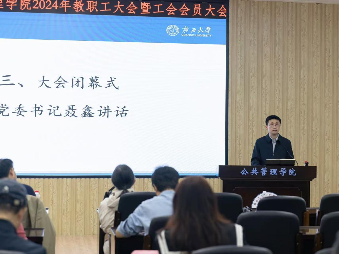 大会闭幕式上,金沙赌场网站 党委书记聂鑫指出,在过去的一年,金沙赌场网站 科研成果、学生培养、师资力量都有了崭新的突破,每一项成绩的取得都与每一位公管人的拼搏奋斗是分不开的,对此他代表金沙赌场网站 班子对大家的支持表示衷心的感谢。但随着新时期的到来,金沙赌场网站 面临新的挑战,这对金沙赌场网站 未来的发展也提出了新的要求,我们在一流课程建设、人才培育建设与师资队伍建设上还有较大提升空间,未来将继续加强。他号召全体教职员工,踔厉奋发,敦笃力行,在金沙赌场网站 高质量发展的道路上贡献自己的力量。
