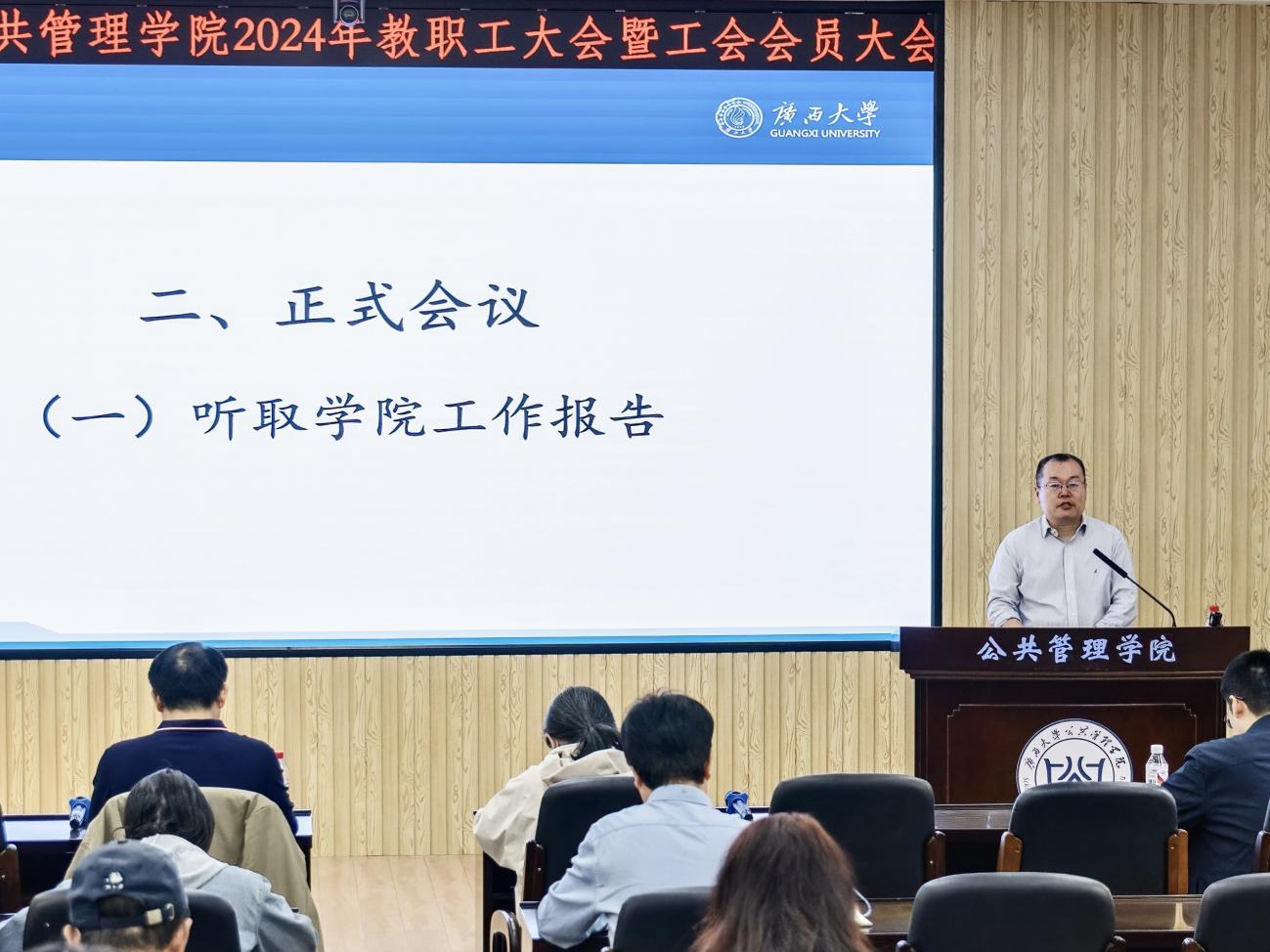 会上,院长史云贵代表金沙赌场网站 班子作了题为“凝心聚力 立德树人 砥砺奋进——奋力谱写金沙赌场网站 高质量发展的新篇章”的工作报告。史云贵院长从金沙赌场网站 党建、人才培养质量、学科高质量发展、师资队伍建设、科研成果、管理和服务等方面全面回顾了金沙赌场网站 2024年的工作成绩,并对2025年的工作进行了展望。他强调,在即将到来的2025年,金沙赌场网站 将继续紧紧围绕“全面推进金沙赌场网站 、公共管理学科高质量发展”的中心工作,坚持“一个中心 两个着力点”的发展战略,加强党建引领、强化学生培养质量,精心谋划组织院庆系列讲座及“华人公共管理学者研讨会”,进一步完善人才“内培外引”政策,积极推进金沙赌场网站 学科专业国际化,建好“政府运行保障管理”二级学科博士点,做好博士后流动站的申报工作,以不忘初心,担当作为的精神面貌,奋力谱写金沙赌场网站 学科建设的新篇章。