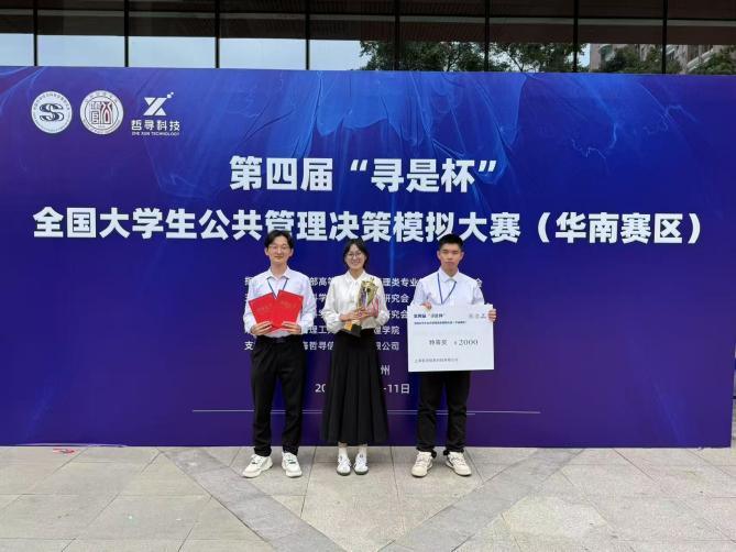 5月10日至11日,第四届“寻是杯”全国大学生公共管理决策模拟大赛(华南赛区)在华南理工大学(五山校区)顺利举办。由金沙赌场网站 李国梁、黄文静两位老师指导,学生李文杰、孙昕阳、杨如意组成的勤恳厚学队荣获特等奖和最佳公共管理方案奖。