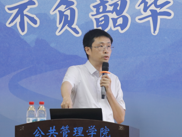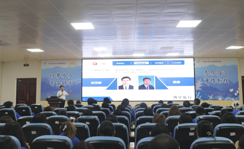 聂鑫围绕金沙赌场网站 历史沿革、学科建设、人才培养等方面展开介绍,并对在座新生提出三点要求:第一是依托院校资源,扎根专业学习。聂鑫指出,金沙赌场网站 汇集了一支由龙花楼教授带领的高水平学者队伍,围绕广西高质量绿色发展等特色命题,开展了系列边疆治理合作研究,取得丰富的科研成果,在社会科学研究领域中展现出了广泛的影响力。他建议同学们虚心求教,刻苦求学,用专业知识丈量八桂大地,怀公管初心绽放青春力量。第二是学习优秀榜样,确立人生目标。聂鑫强调,金沙赌场网站 制定了“五色花”党建育人工作体系,旨在通过多层次、全过程、精细化的人才培养机制,帮助同学们学有所成,学有所就。他向新生们分享金沙赌场网站 往届优秀学子在科研、升学及就业方面的卓越表现,鼓励同学们确立人生规划,汲取榜样力量。第三是拥抱科技时代,同频时代发展。聂鑫结合自身在人工智能领域的学习实践经历,指出培养数字思维能力、数字素养能力与数字分析能力的重要性,希望同学们以人工智能赋能大学学习,将专业知识融入AI赛道,乘科技之风探索学科发展新可能,在跨界融合中拓宽成长新路径。