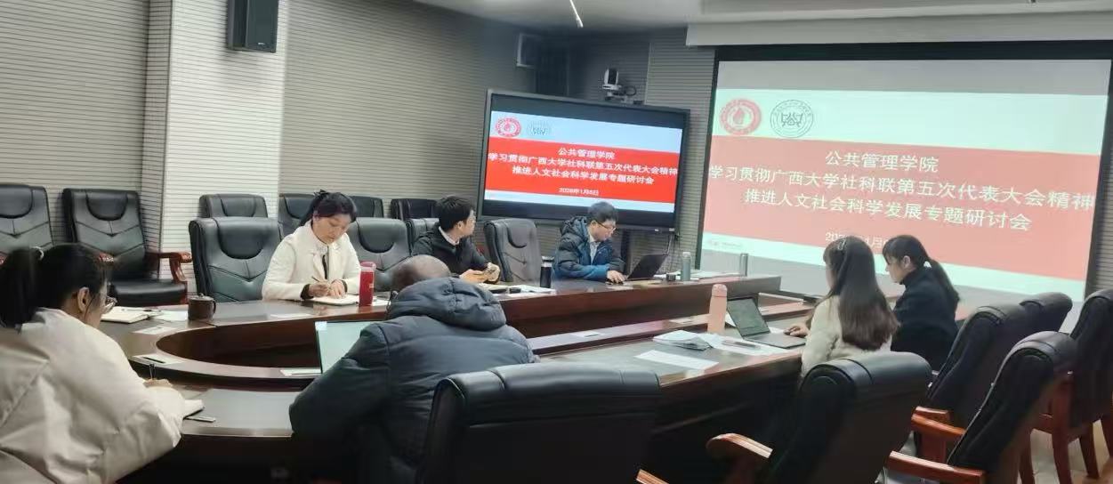 近日,澳门金沙赌场线上官网 领导班子召开专题会议,深入学习贯彻学校社科联第五次代表大会精神。会上,金沙赌场网站 对照《广西大学推进人文社科高质量工作目标任务分解表》,结合发展实际细化落实举措,部署“十五五”时期重点工作,以学促干、守正创新,推动金沙赌场网站 人文社科高质量发展的共识与合力。
