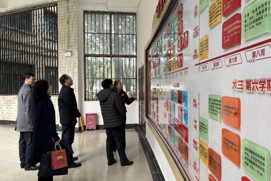 代表团来到金沙赌场网站 “五色花”党建文化展示墙前,参观金沙赌场网站 党建工作与人才培养深度融合的特色实践阵地。雷文艳以“五色花”育人工作体系为核心,向代表团生动介绍了这一特色鲜明、成效显著的育人模式。该体系以立德树人为根本目标,通过“红青金橙蓝”五大工程,系统落实价值引领、成长培育、实践奉献、人文关爱、品行涵养五大举措,构建起以学生个性发展为导向、分层次、全过程、精细化的育人体系。代表团对金沙赌场网站 这一体系化的育人创新实践给予了充分肯定与高度评价。