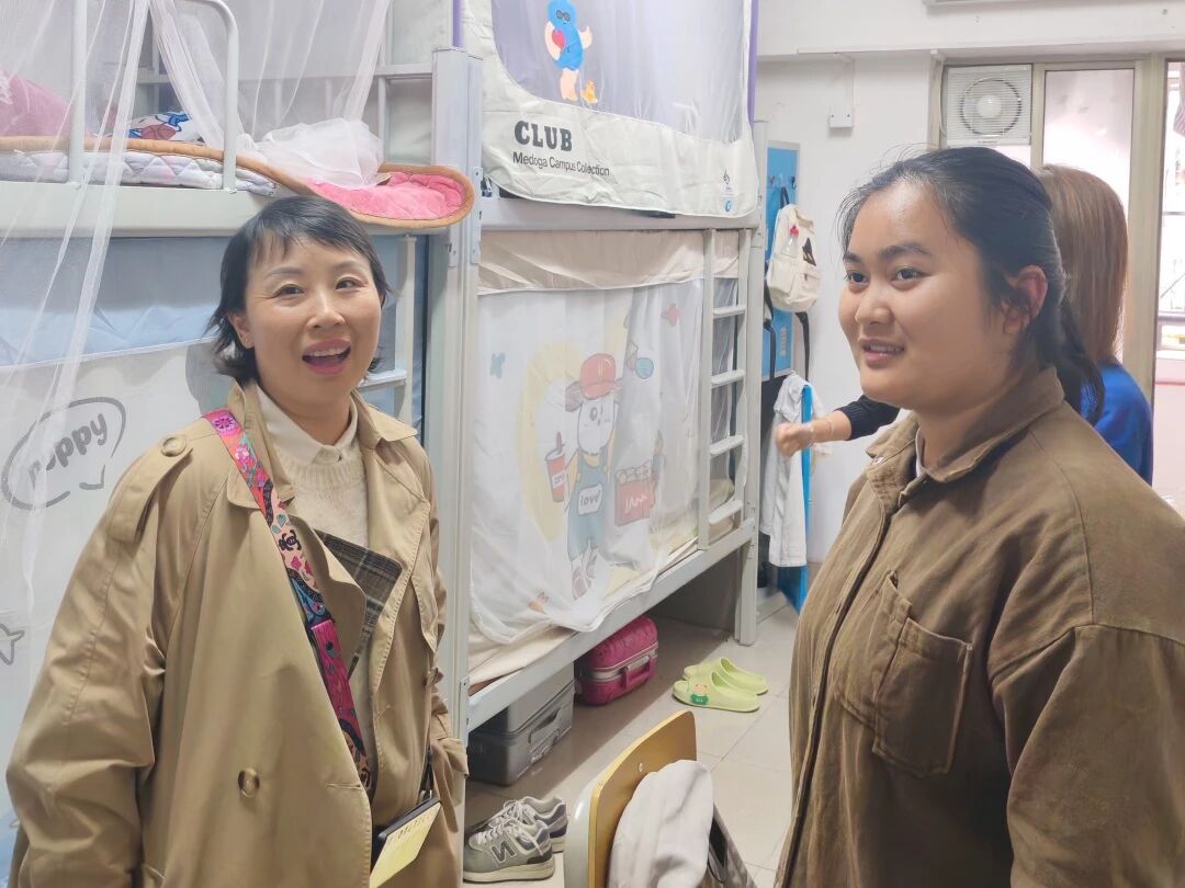 同时,走访老师们对宿舍的用电安全、卫生环境与内务整理进行了细致检查,对整洁有序、氛围融洽的宿舍予以表扬,也对发现的安全隐患和卫生问题提出了及时整改要求,提醒同学们务必遵守宿舍管理规定,增强安全意识,共同维护安全、文明、和谐的居住环境。
