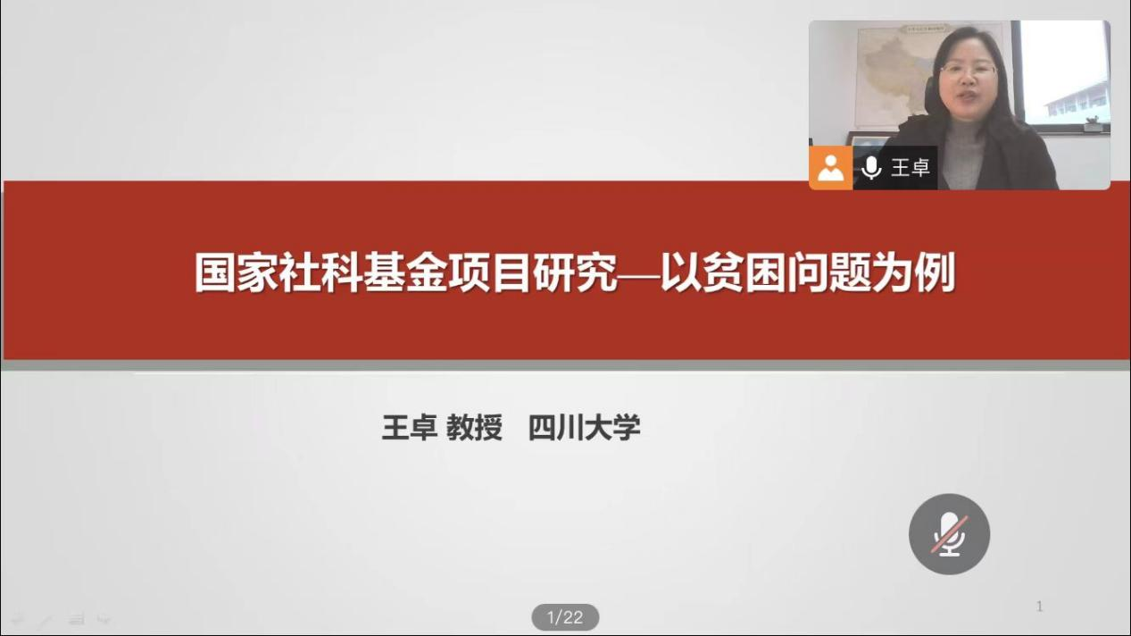 2月15日下午,四川大学金沙赌场网站 王卓教授受邀参加金沙赌场网站 公管名师大讲堂,作题为“国家社科基金项目研究—以贫困问题为例”的线上主题讲座。讲座由金沙赌场网站 党委委员、副院长魏万青教授主持,副院长周均旭教授、熊斌教授、黎昌珍教授、叶大凤教授、王巨光教授等老师,以及金沙赌场网站 博士、硕士研究生等百余名师生参加了本次学术讲座。