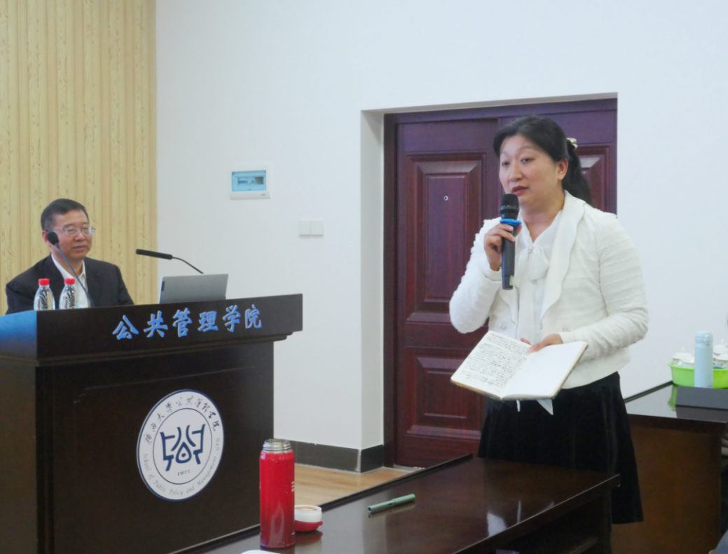 讲座尾声,唐旭彬进行总结致辞。她首先对何增科的精彩分享表达了深切的感谢,高度赞扬了他在讲座中所展现出的深厚学识与独到见解。她还提及了研究报告的现实意义与学术价值,值得在座的每一位听众学习与探讨。
