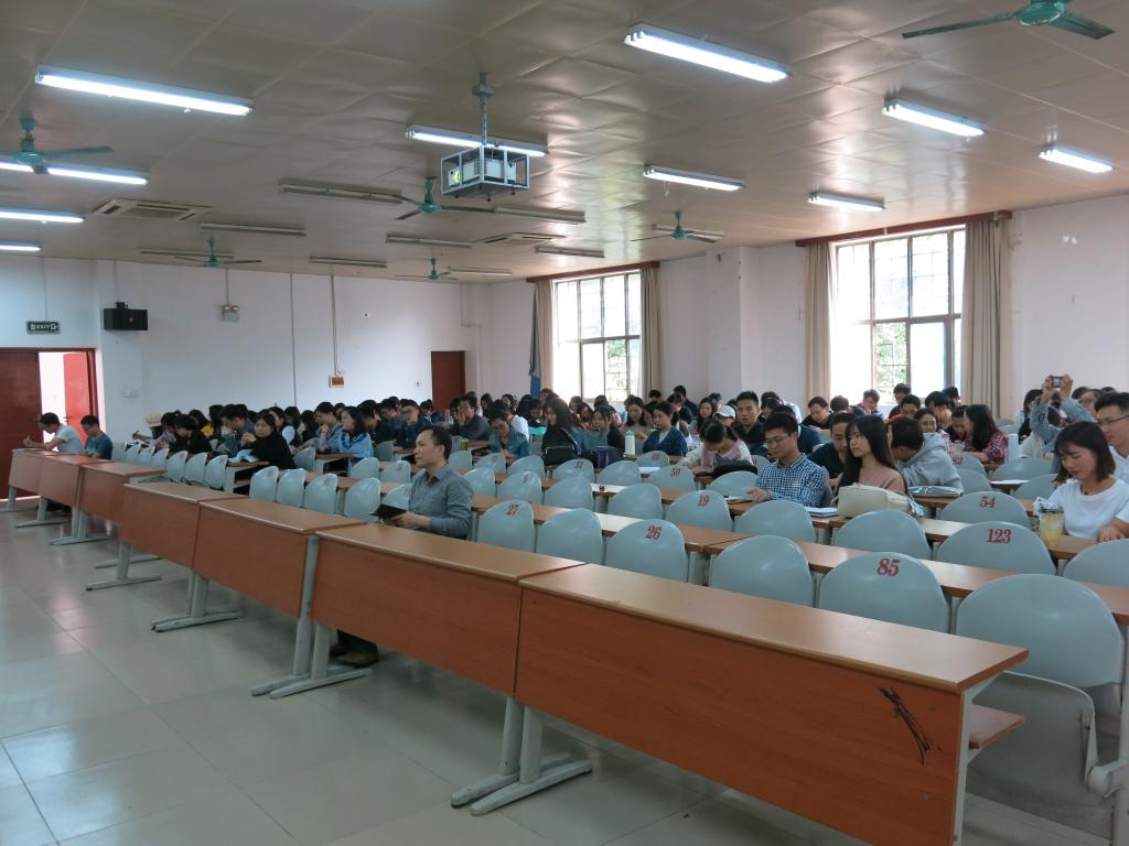 2018年3月22日15点30分,金沙赌场网站 本学期的研究生年级大会在金沙赌场网站 203教室顺利召开。金沙赌场网站 党委副书记甘武琳老师、16级研究生班主任梁娟老师、学工组刘佩瑶老师和周海恋老师及2016级、2017级全体研究生参与了此次会议,会议由刘佩瑶老师主持。
