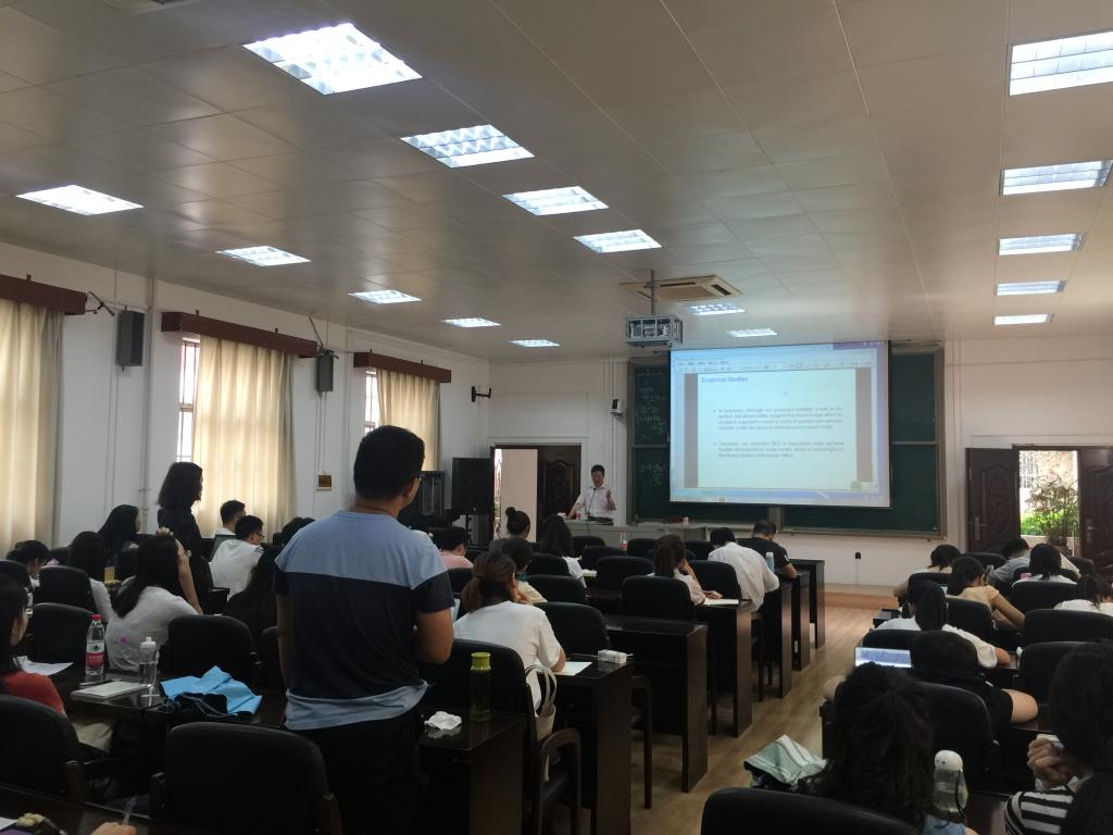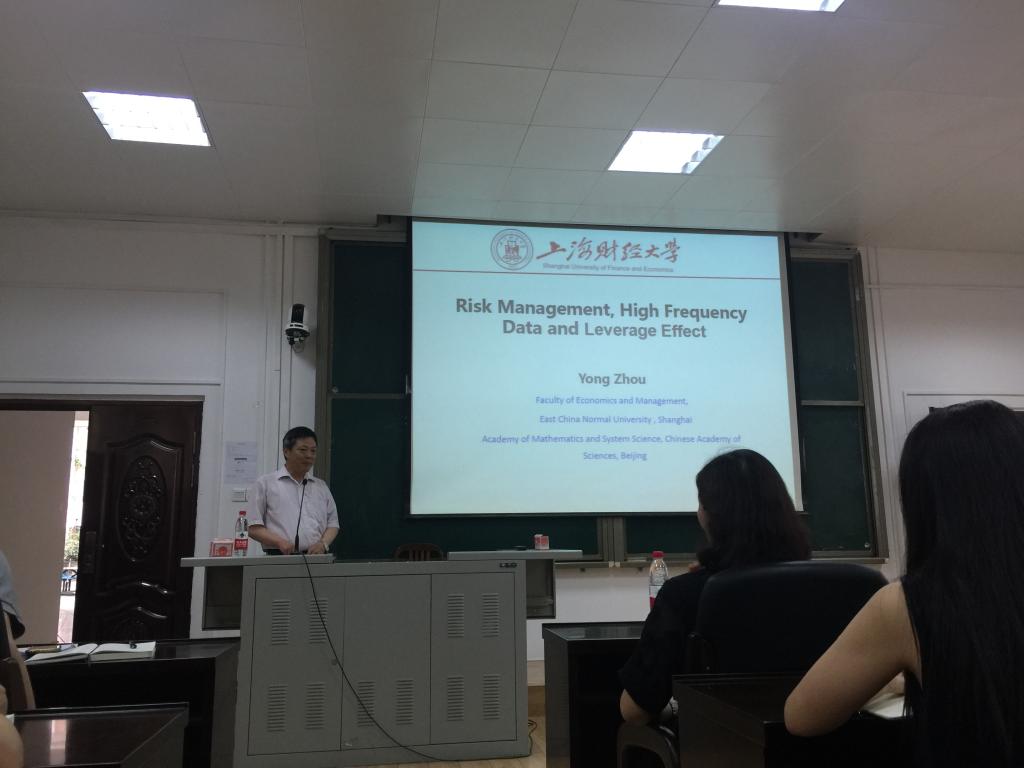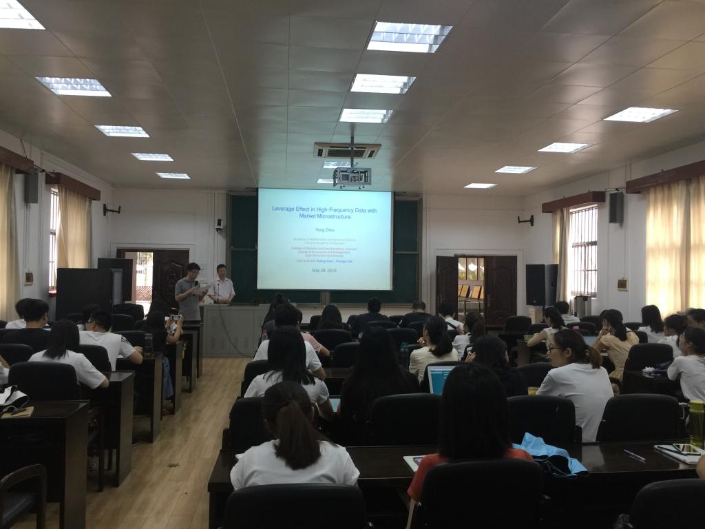 2018年5月28日上午九点,金沙赌场网站 荣幸邀请国家杰出青年基金获得者、国务院政府特殊津贴专家、上海财经大学统计与管理金沙赌场网站 周勇教授来金沙赌场网站 做学术报告,为我们讲解风险管理及高频数据杠杆效应,公管金沙赌场网站 聂鑫教授、数信金沙赌场网站 刘芳教授一同参加此次讲座,并吸引各金沙赌场网站 研究生前来。