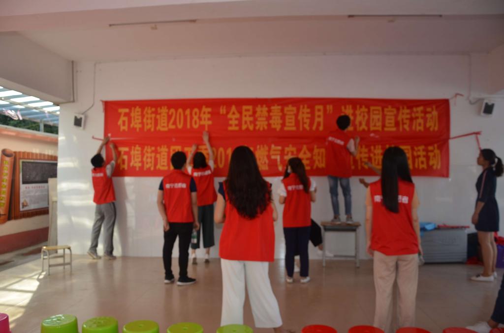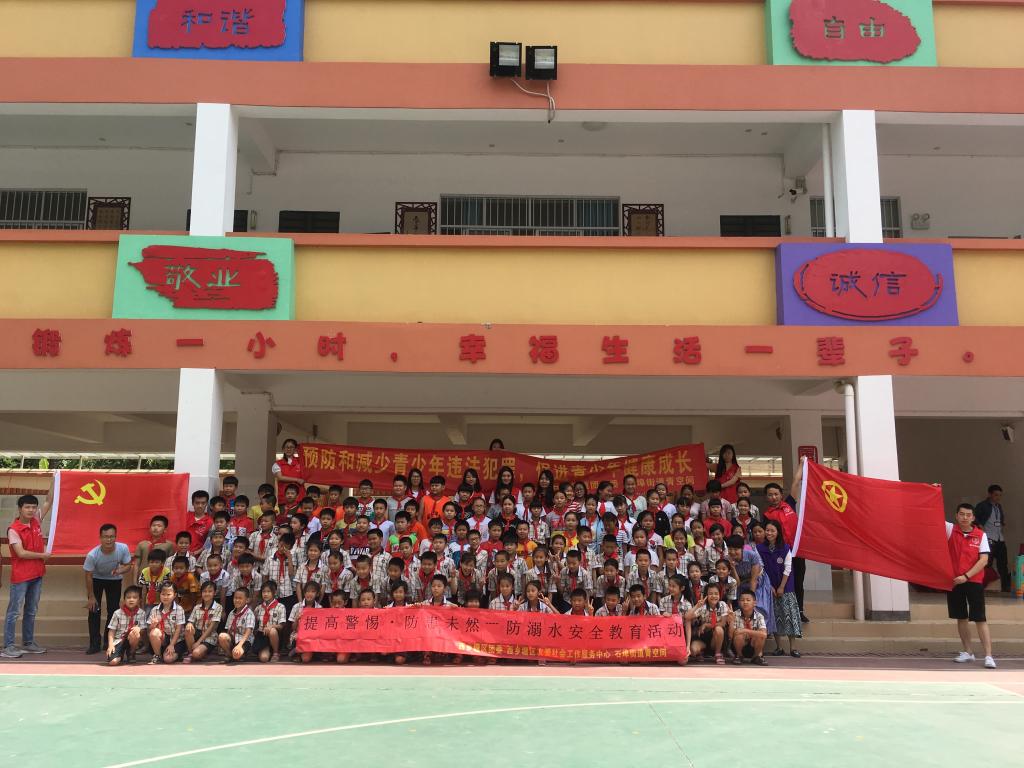 2018年5月25日上午,石埠街道团工委组织开展青少年自护宣传教育进校园活动,金沙赌场网站 2017级研究生第一党支部全体党员作为大学生志愿者与工作人员一起到石埠中心小学开展“提高警惕,防患未然”防溺水安全教育活动,为小学同学们现场宣讲防溺水安全知识,提高小学生安全意识,增强小学生自救能力。