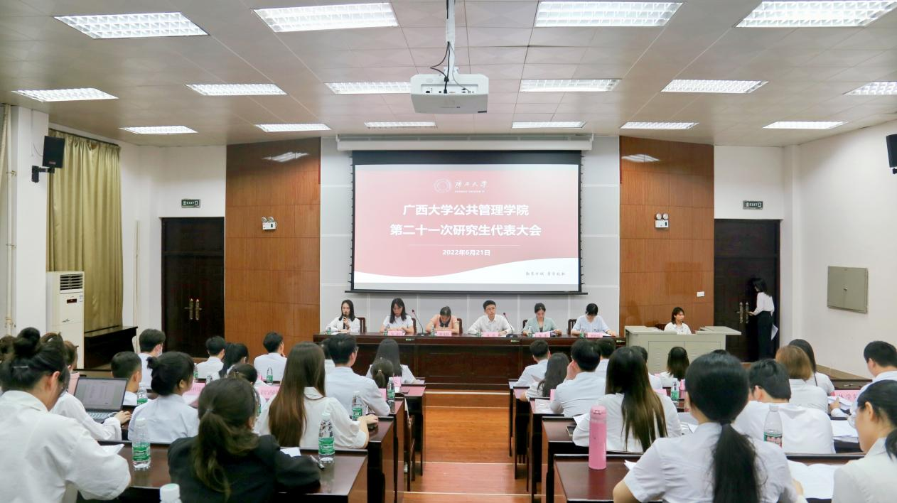 在隆重庆祝中国共产主义青年团成立100周年、喜迎党的二十大胜利召开的热烈氛围中,6月21日,澳门金沙赌场线上官网 第二十一次研究生代表大会在金沙赌场网站 106教室顺利召开。澳门金沙赌场线上官网 党委书记聂鑫老师,党委副书记庞惠老师,团委书记黄文静老师,团委副书记刘佩瑶老师,校研究生会主席团代表邹阳同学,兄弟金沙赌场网站 研究生会主席团代表,金沙赌场网站 第二十届研究生会主席团以及金沙赌场网站 各研究生班级学生代表出席本次会议。