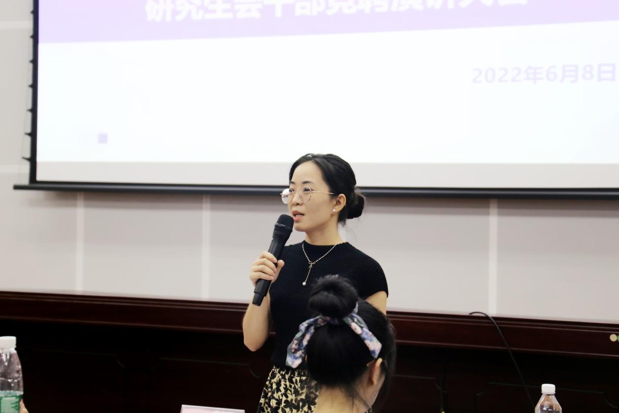 2022年6月8日上午,澳门金沙赌场线上官网 第二十一届研究生会主席团候选人与各工作部门负责人候选人竞聘演讲大会在金沙赌场网站 106室顺利召开。澳门金沙赌场线上官网 党委副书记庞惠老师、金沙赌场网站 团委副书记刘佩瑶老师、金沙赌场网站 第二十届研究生会全体成员及部分21级硕士研究生志愿者出席了大会。本次大会由秘书处吴林柽同学主持,本次大会帮助遴选金沙赌场网站 第二十一届研究生会主席团候选人和各工作部门负责人候选人。
