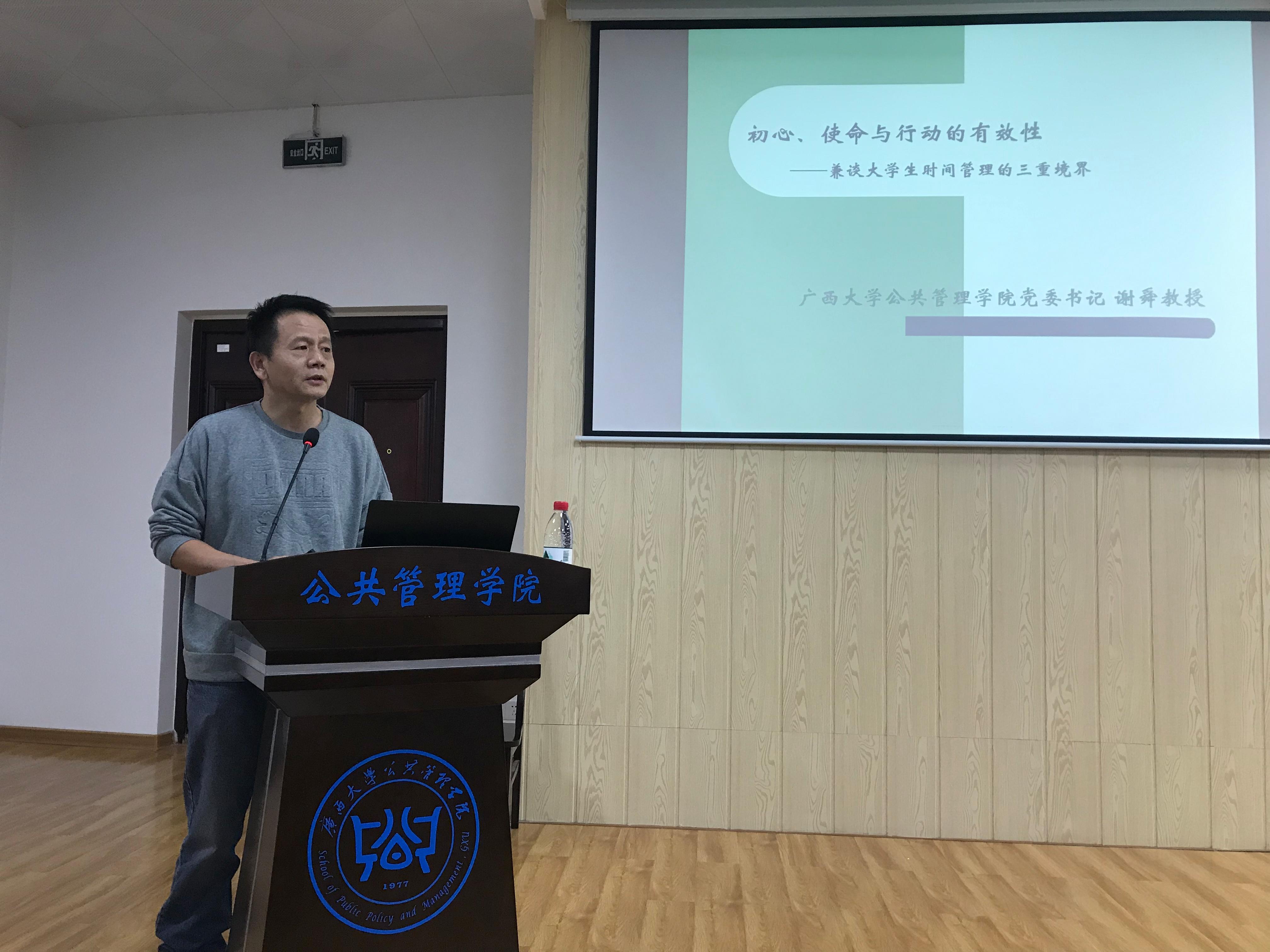 11月27日下午,以“初心、行动与行动的有效性——兼谈大学生对时间管理的三重境界”为题,讲授“不忘初心、牢记使命”专题党课在金沙赌场网站 顺利开展。此次党课由金沙赌场网站 党委书记谢舜同志主讲、党委副书记甘武琳同志主持,授课对象为金沙赌场网站 全部学生党员同志,同时参加党课的还有金沙赌场网站 副院长黄宏伟同志、教师代表刘佩瑶同志。