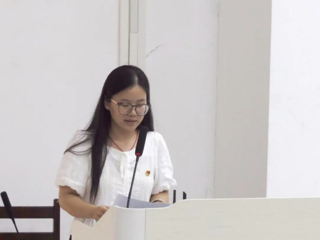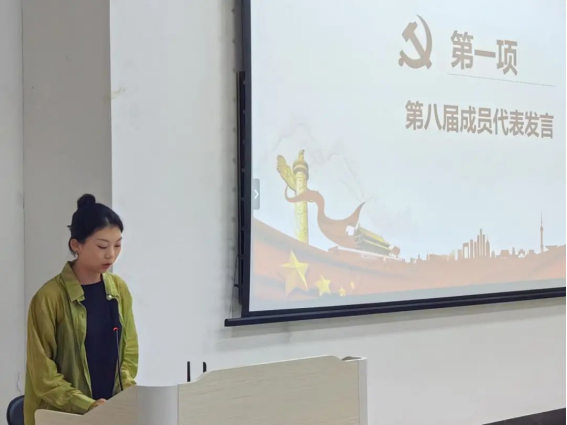 随后,大会介绍了第九届学生党建会全体成员,新一届副主任韦志玲作为成员代表发言。她表示,党建会要明确职责定位,坚持优良传统,加强部门间的交流与合作,努力将党建会建设为具有较强凝聚力和号召力的组织。并强调党建会成员应在过去工作的基础上汲取经验,积极工作,主动思考,追求自我进步。