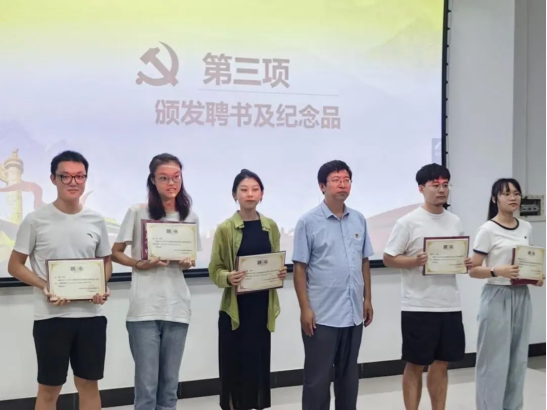 其后,鞠平凡为第九届学生党建会成员代表颁发聘书及纪念品并合影留念。