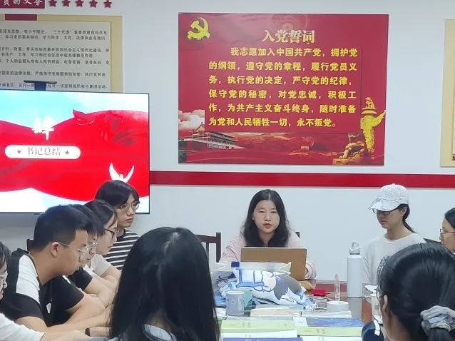 在交流分享环节,支部全体党员就如何将大会精神落实到实际工作中展开讨论,大家结合个人实际纷纷表示要充分发挥党员引领作用,积极响应大会号召,以实际行动践行教育大会精神。王露以“我们能为建设教育强国做什么”提问,引导支部成员思考新时代的学生党员同志的应有担当。李怡萌提到,同学们通过论文撰写、课题参与等为国家发展问题提出解决方案等,就是实实在在地为构建中国自主知识体系做贡献,为建成教育强国添砖加瓦的实例。讨论过程中,加深了支部党员对全国教育大会精神的理解与认识,进一步激发了大家责任感和使命感。