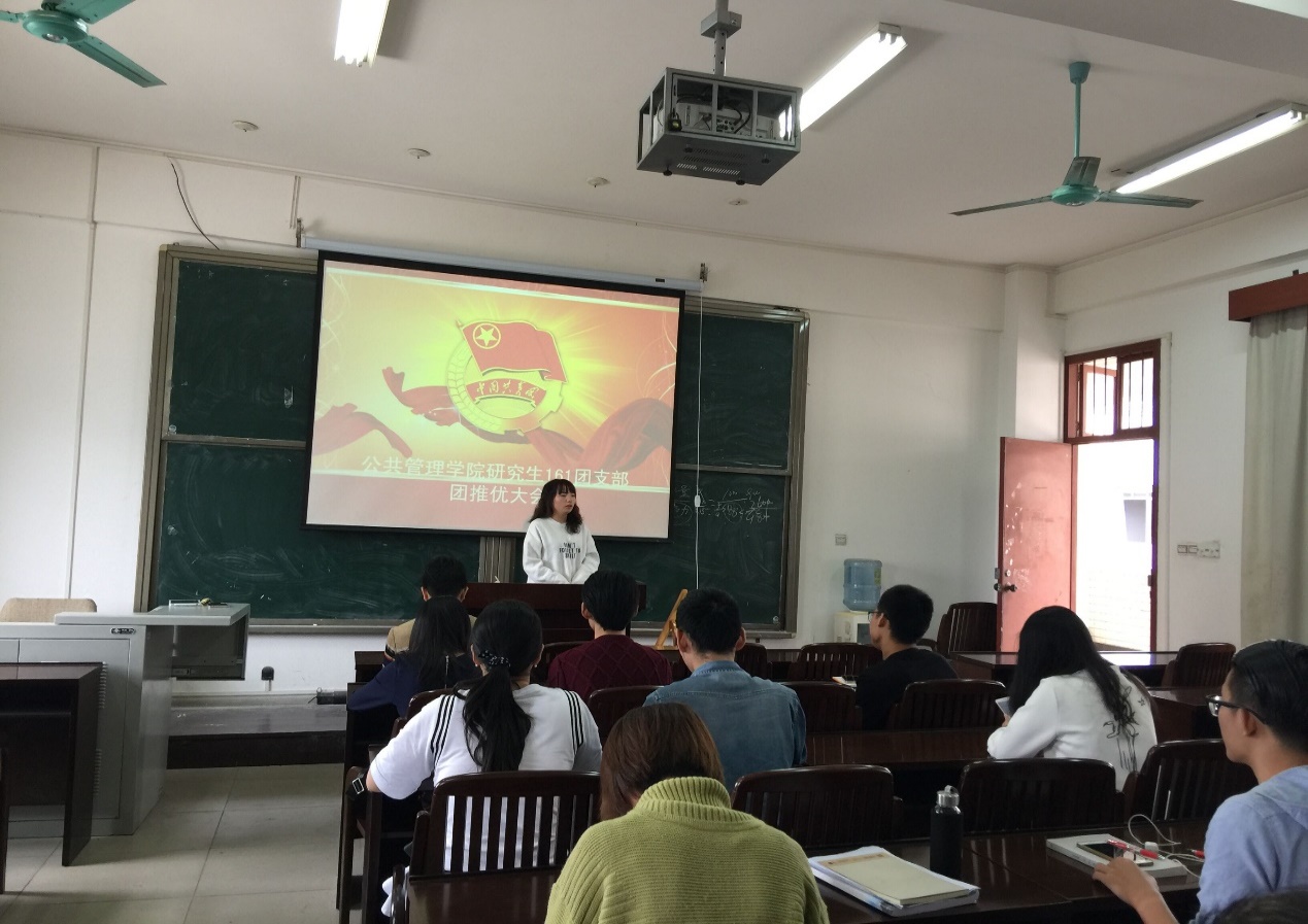 (研究生161班支部邓艳萍同志在支部推优大会进行参评发言)